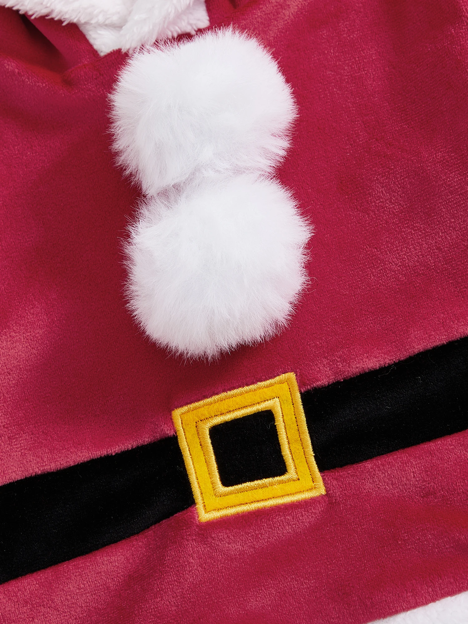 Bring festive cheer to the holidays with this adorable Santa Claus costume set for kids. Designed with classic Christmas details, this outfit features a soft red top with white faux fur trim, a decorative black belt print with a gold buckle, and cute pom-pom accents. The matching red pants complete the look, making it perfect for Christmas photos, parties, and seasonal celebrations.