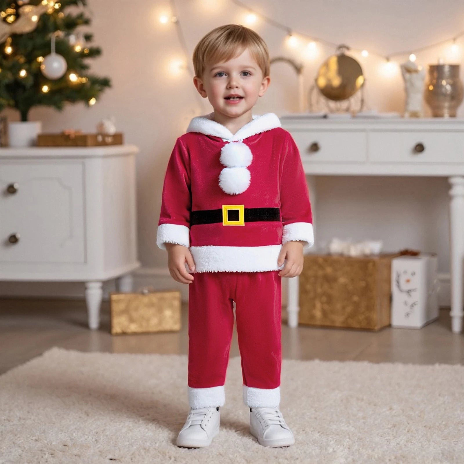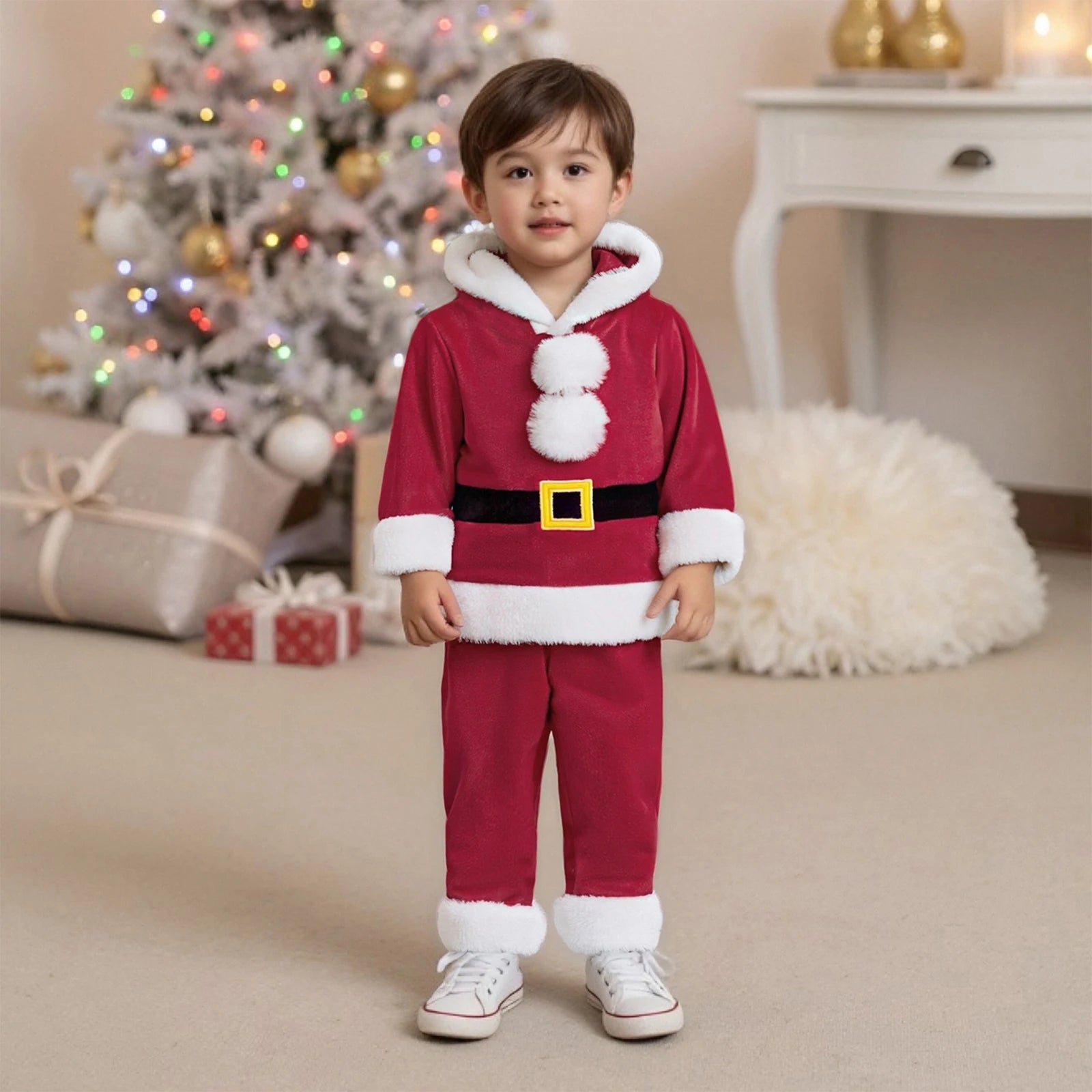 Made from comfortable, child-friendly fabric, this Santa set allows easy movement while keeping little ones cozy and cheerful throughout the festivities.