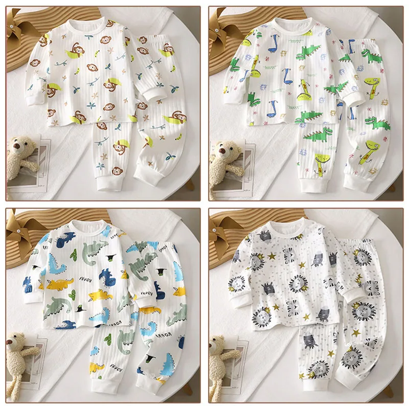 - **Cute Cartoon All - Over Prints**: Featuring various adorable cartoon prints like dinosaurs, monkeys, and elephants, the sets add a playful and lively touch, making them very attractive to kids and perfect for creating a fun homewear look.
