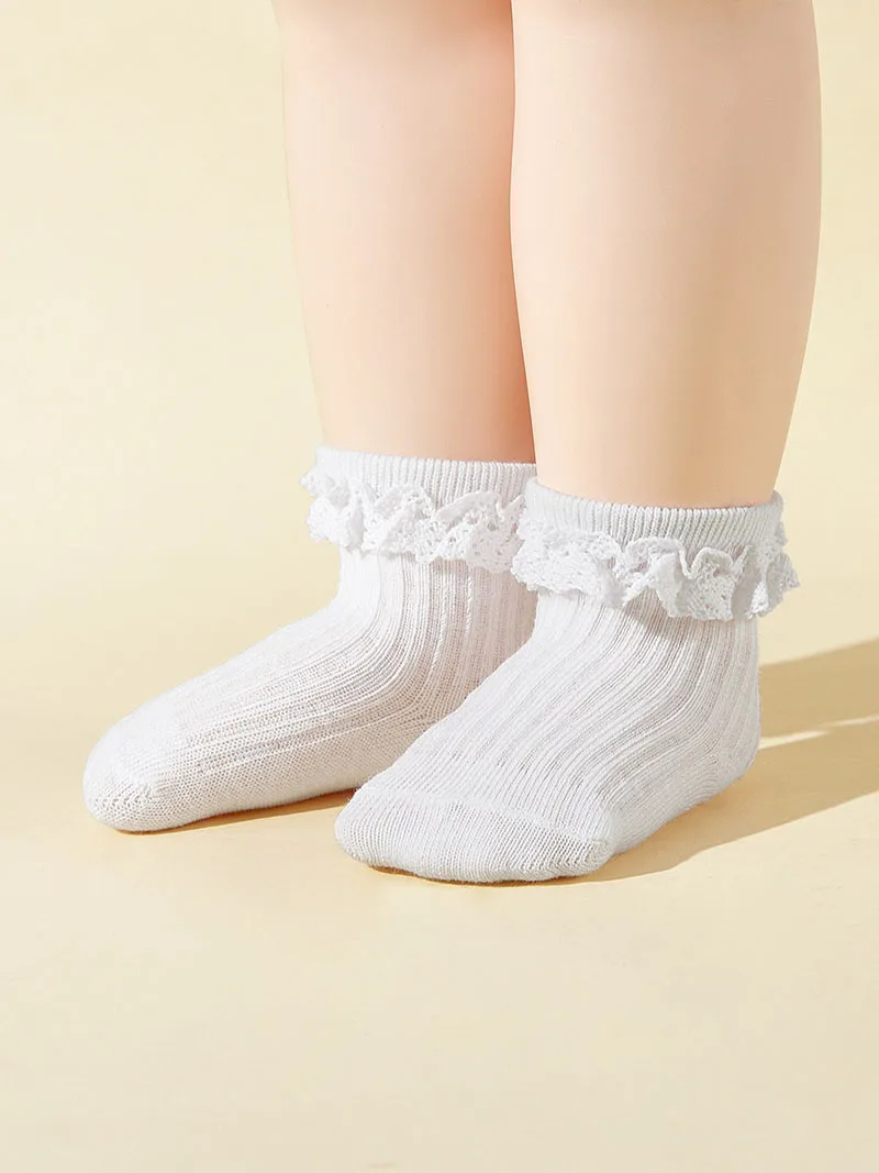 These beautiful girls’ ankle socks are made from soft, breathable cotton to keep little feet comfortable all day. Designed with a delicate lace ruffle at the top, they add a sweet and elegant touch to any outfit.