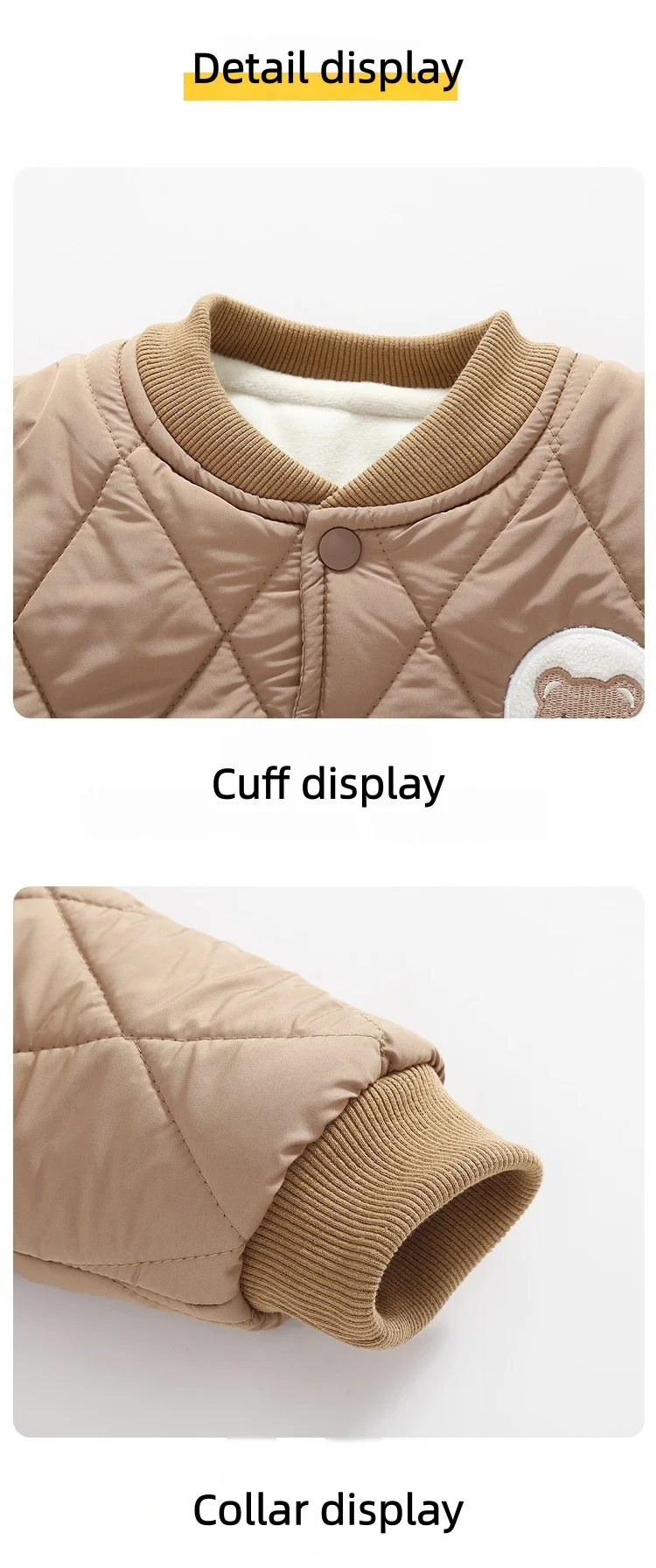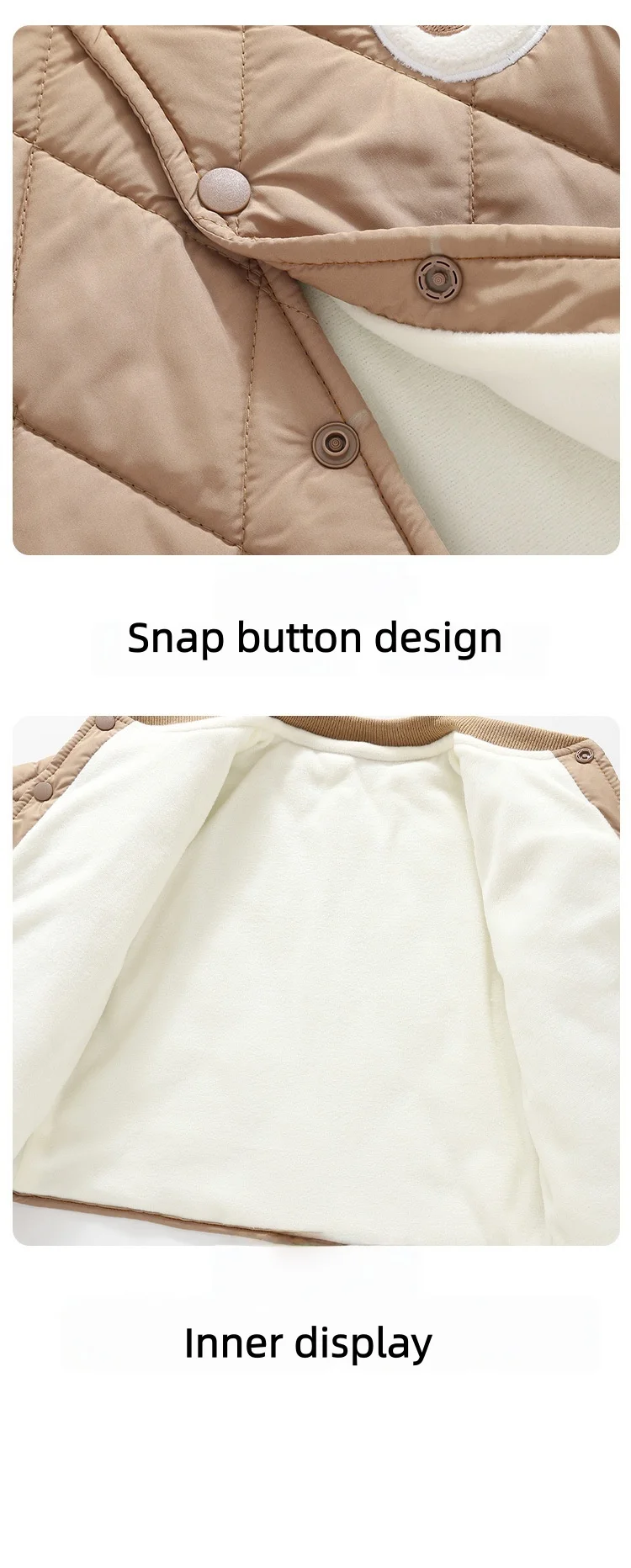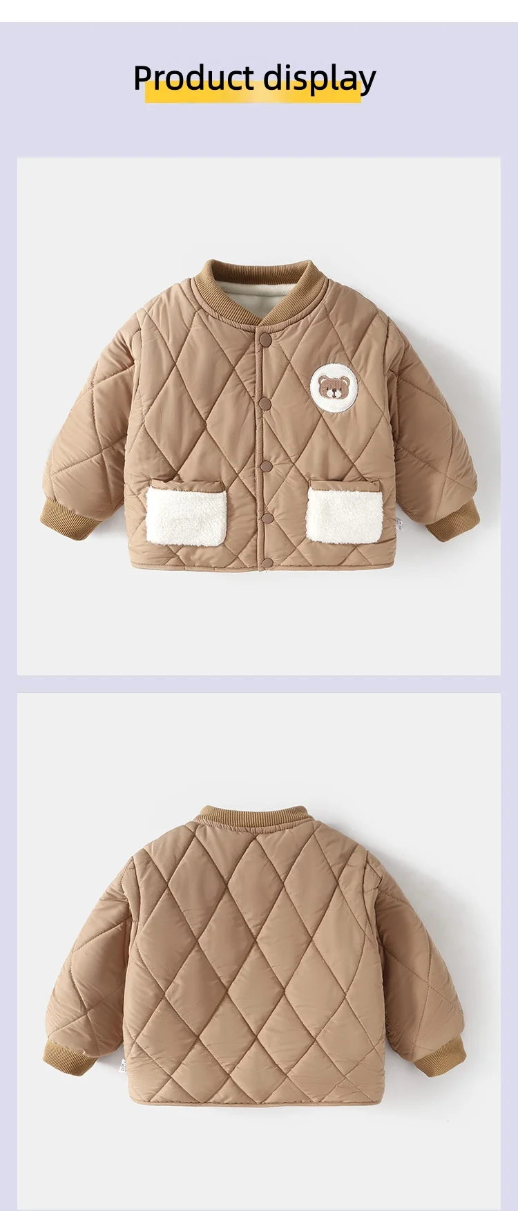 This jacket is important because it provides warmth, comfort, and protection for children during cool and cold weather. It is designed with soft padding and a quilted structure that helps keep body heat inside while remaining lightweight and easy to wear. The gentle fabric is safe for children’s sensitive skin, making it ideal for everyday indoor and outdoor use.