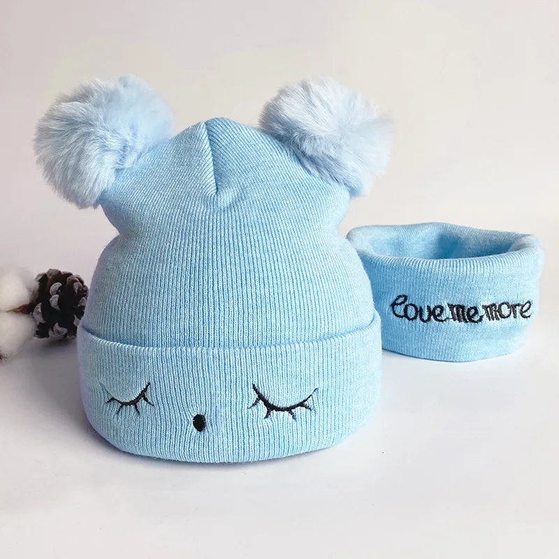 This adorable baby winter set includes a soft knit cap and a matching scarf designed to keep your little one warm and cozy. The cap features cute embroidered sleepy eyes and fluffy pom-pom ears, adding a charming and playful look. The matching scarf fits gently around the neck, providing extra warmth without irritation. Made from skin-friendly, breathable knit fabric, this set is perfect for cold weather and everyday winter outings.