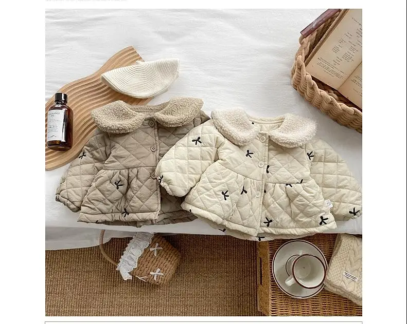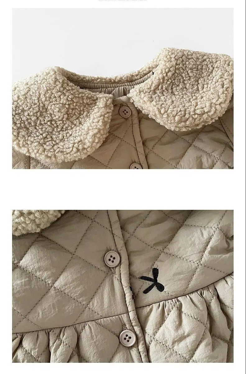 This beautiful girls’ quilted jacket is designed to keep little ones warm while looking stylish. Made from high-quality padded fabric, it features a soft faux-fur collar that adds extra warmth and a cozy feel around the neck. The delicate bow embroidery across the jacket gives it a sweet and charming touch.