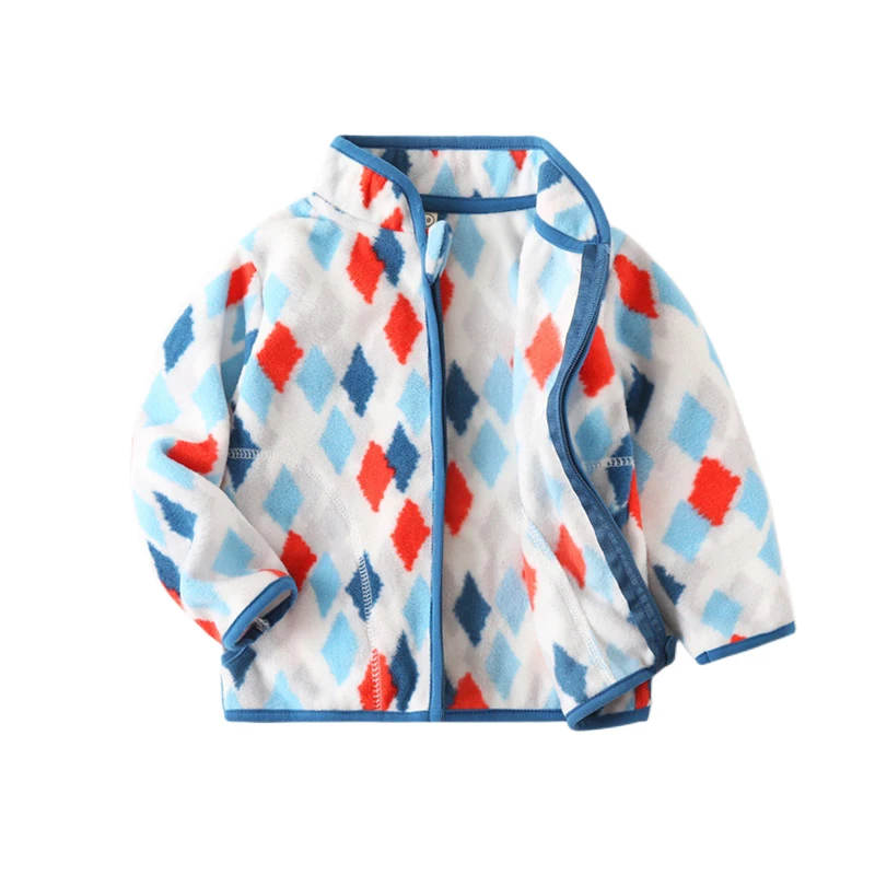 The jacket includes a front zipper for easy wear and a high collar to provide extra warmth on cooler days. Lightweight yet warm, it’s perfect for everyday use, outdoor play, school, or layering during autumn and winter.
